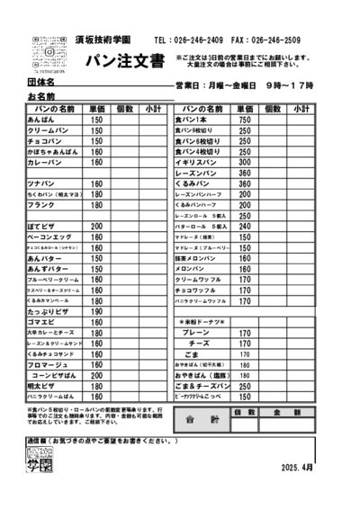 運動会などの各種イベントや、児童クラブの小さめのパンなど、